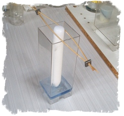 While the candle cools, let me draw your attention to one point: the wick size of the core candle is based on the diameter of that candle and not on the diameter of the ice candle. This means that, because the wick is too thin for the ice candle, the flame will "dig a well" in the center of the candle as it burns.