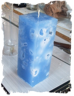 This fun technique may have different names: ice candle, cheese candle, moon candle... but the result is always a candle with a great look: full of holes !