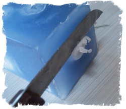 If your core candle was too long, use a sharp knife to trim it and make it level with the base of the candle.