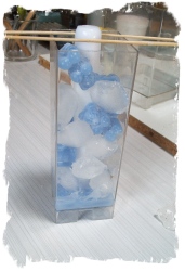 You can use ice blocks exclusively but in this example, I used a mix of ice blocks and tiny wax teddy bears (just for fun).